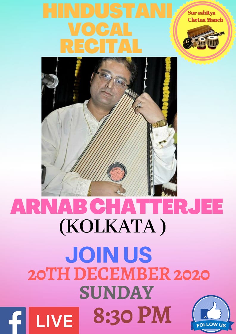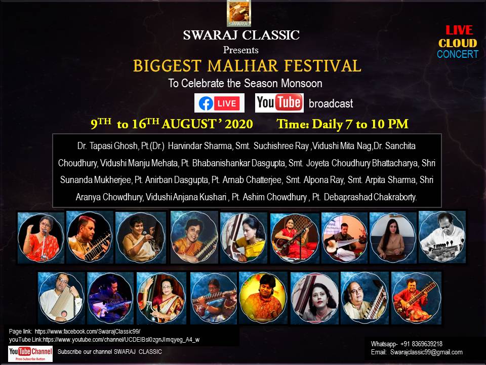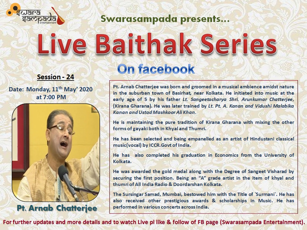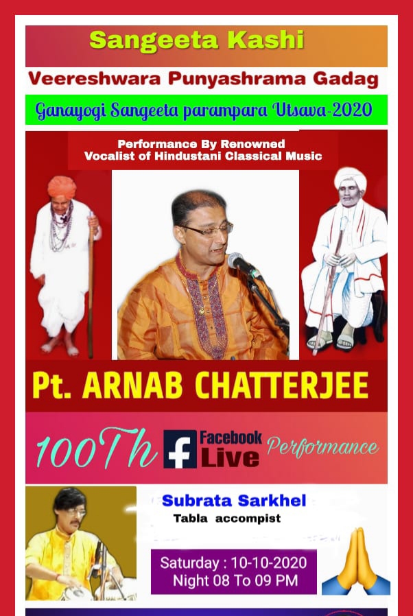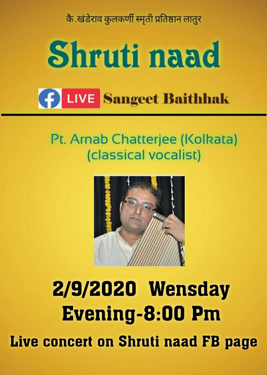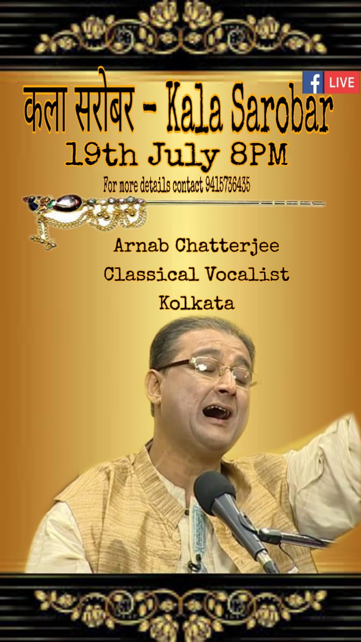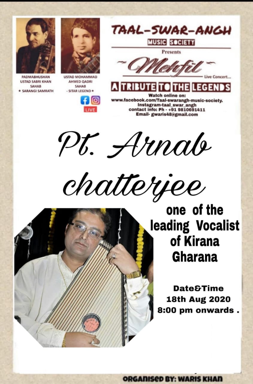 Forthcoming live event of Pt. Arnab Chatterjee at Mallhar Festival on 20th July 2021 organised by Anuranan in the memory of Bharat Ratna Pandit Bhimsen joshi from 17th July 2021 to 23 rd July 2021.That will be live at Anuranan You tube channel from 9pm onwards from 17th July 2021 -23rd July 2021.For details updates regarding the festival follow the Anuranan Facebook page