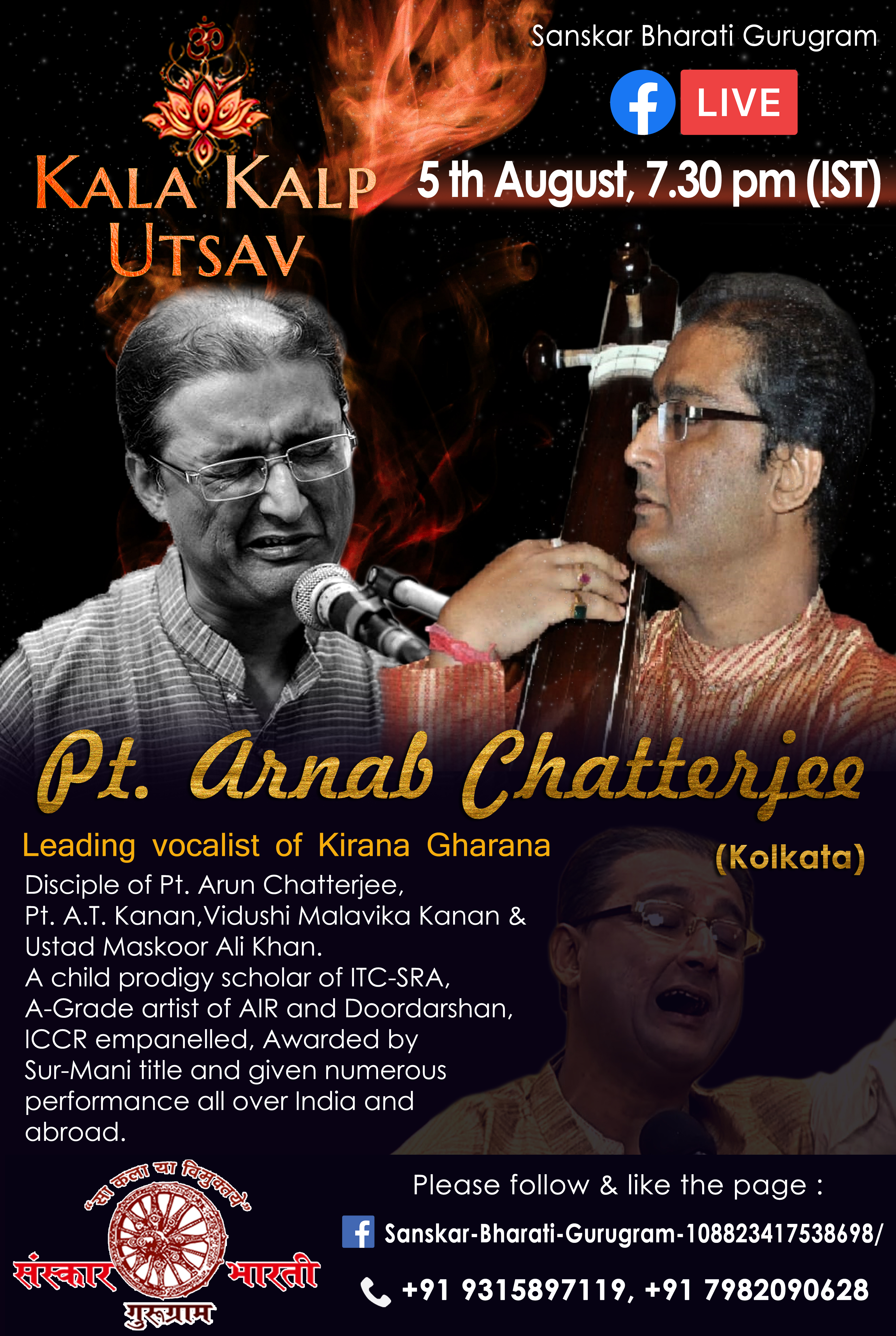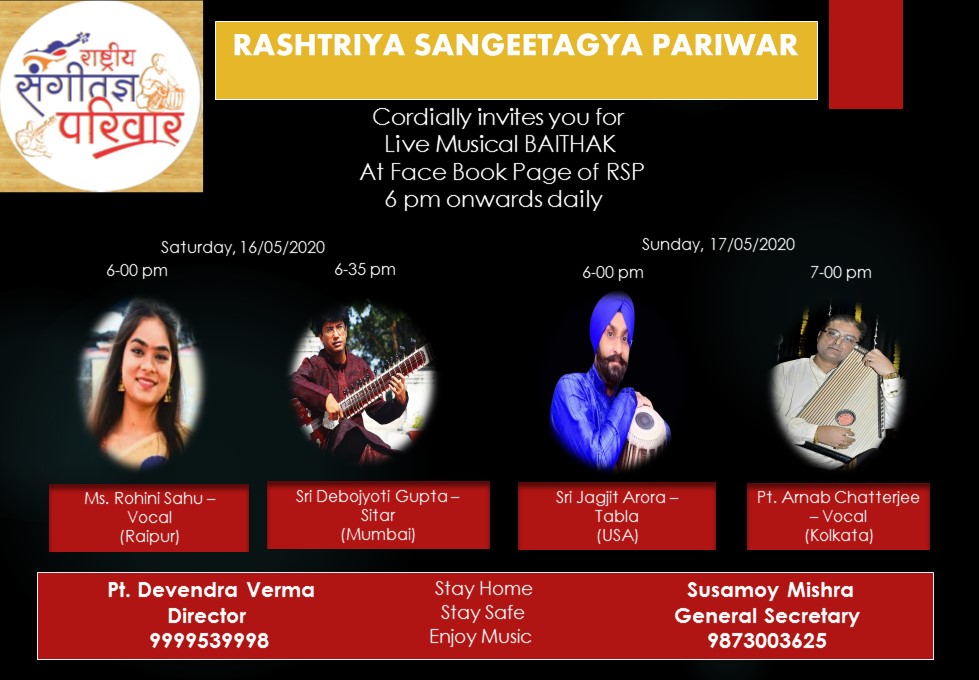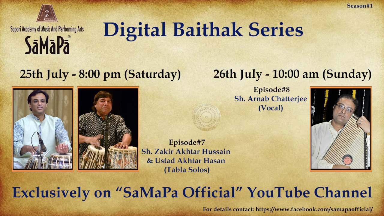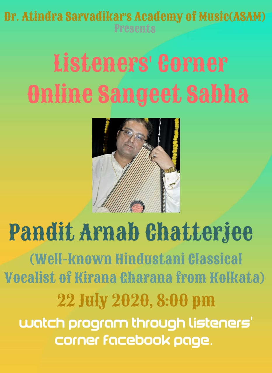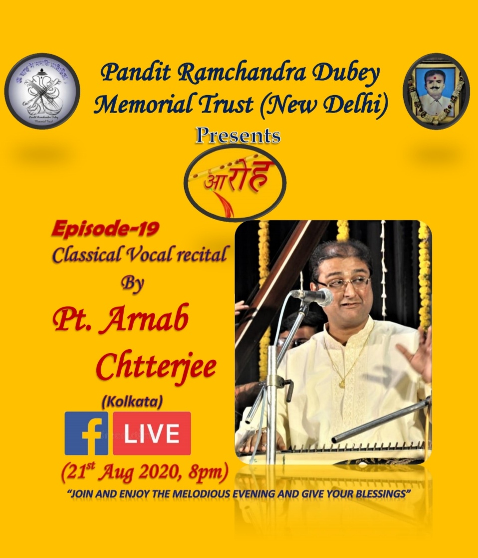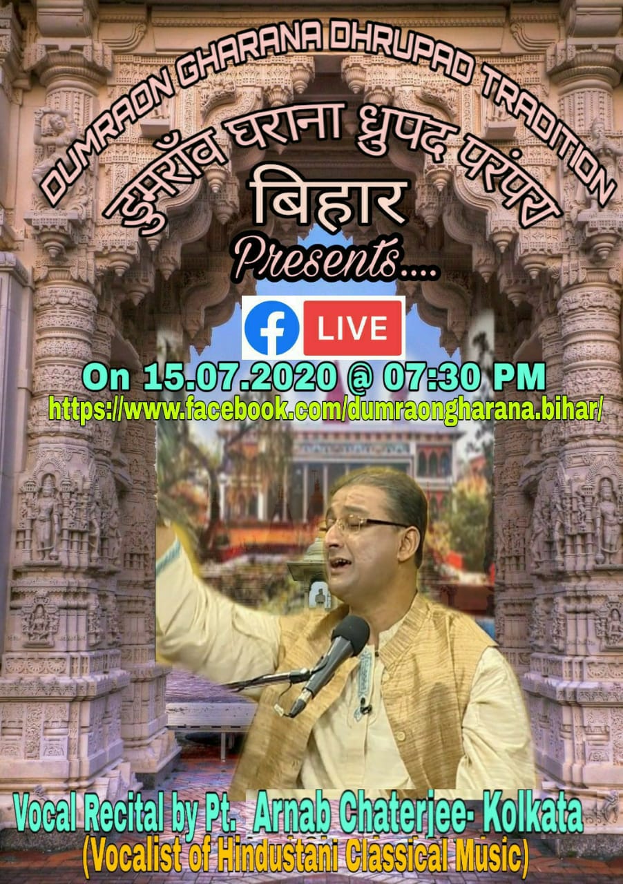 Forthcoming live event of Pt. Arnab Chatterjee at Mallhar Festival on 20th July 2021 organised by Anuranan in the memory of Bharat Ratna Pandit Bhimsen joshi from 17th July 2021 to 23 rd July 2021.That will be live at Anuranan You tube channel from 9pm onwards from 17th July 2021 -23rd July 2021.For details updates regarding the festival follow the Anuranan Facebook page