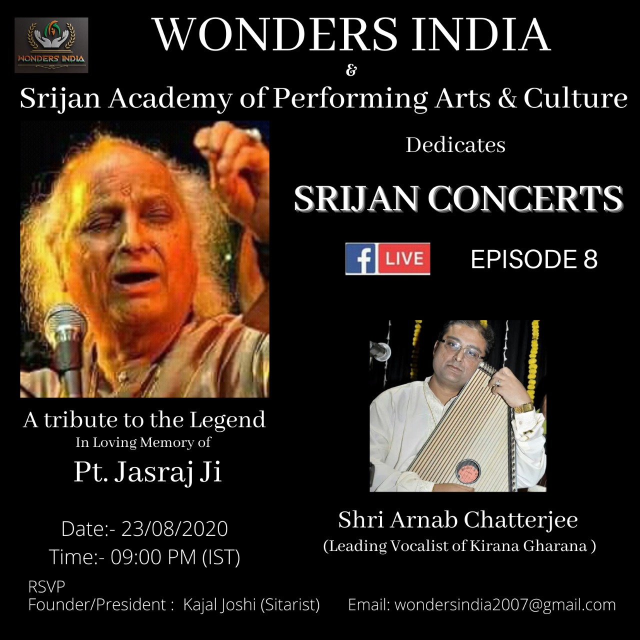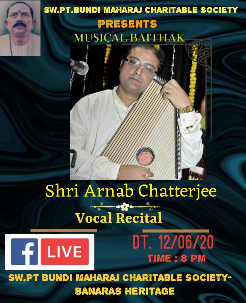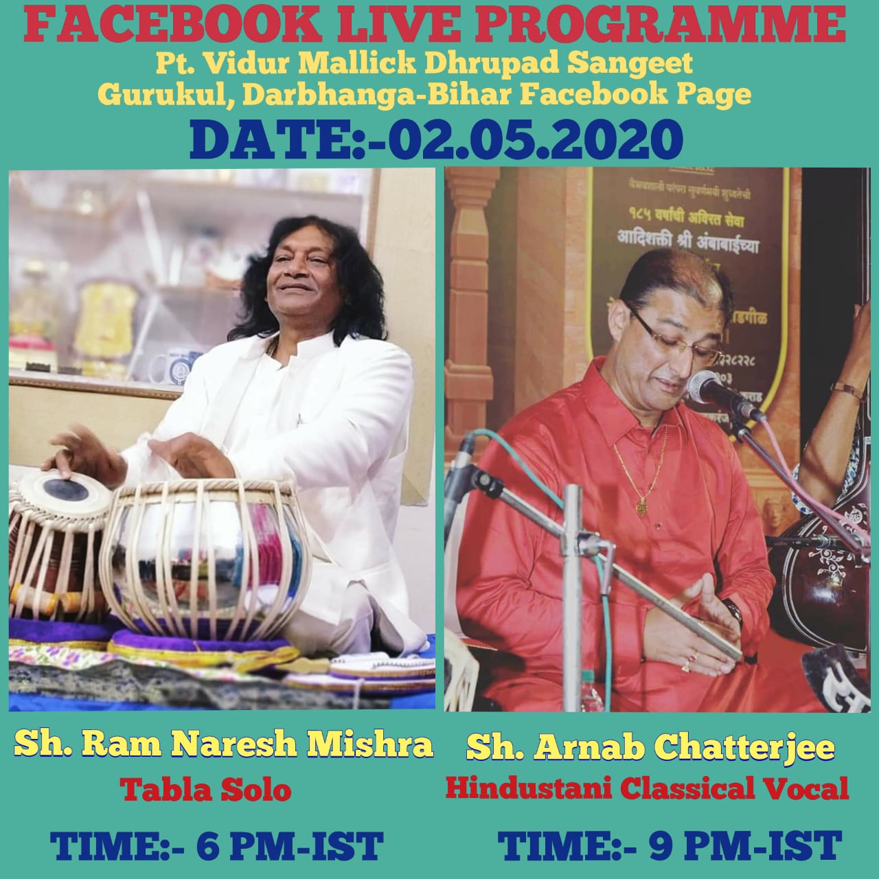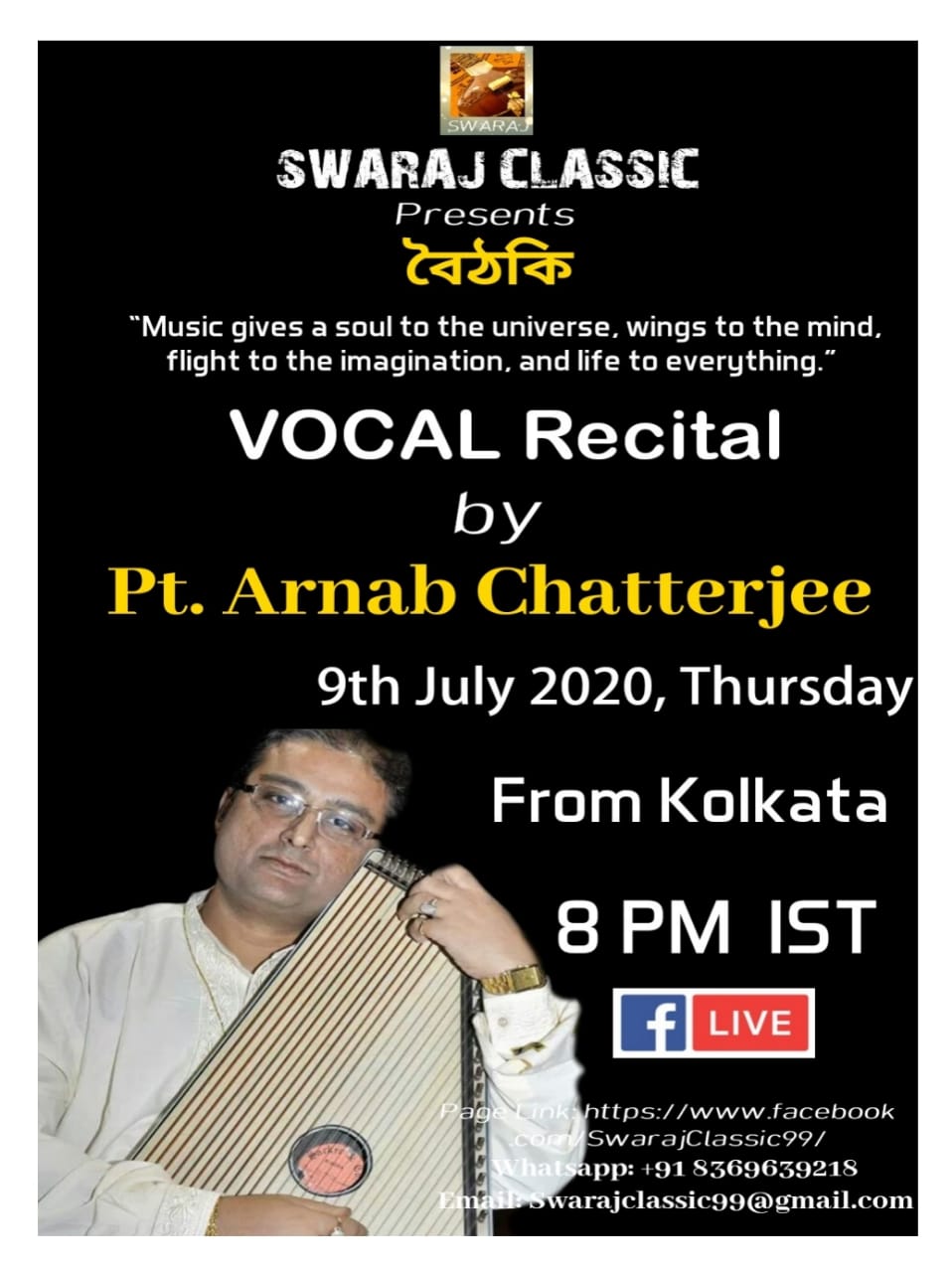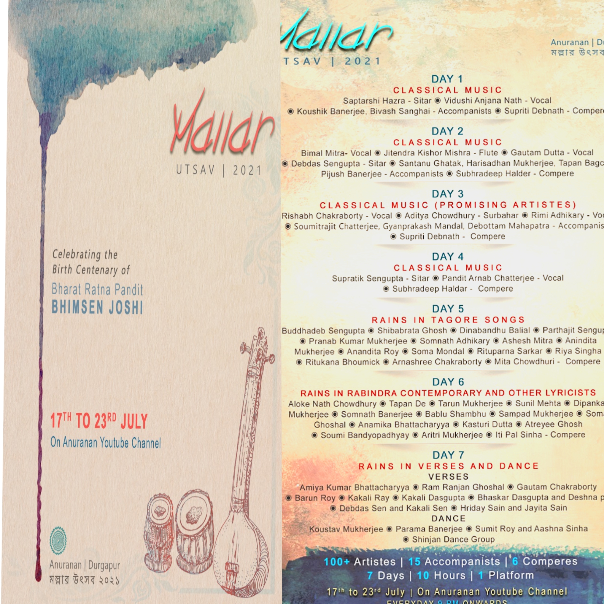 Forthcoming live event of Pt. Arnab Chatterjee at Mallhar Festival on 20th July 2021 organised by Anuranan in the memory of Bharat Ratna Pandit Bhimsen joshi from 17th July 2021 to 23 rd July 2021.That will be live at Anuranan You tube channel from 9pm onwards from 17th July 2021 -23rd July 2021.For details updates regarding the festival follow the Anuranan Facebook page