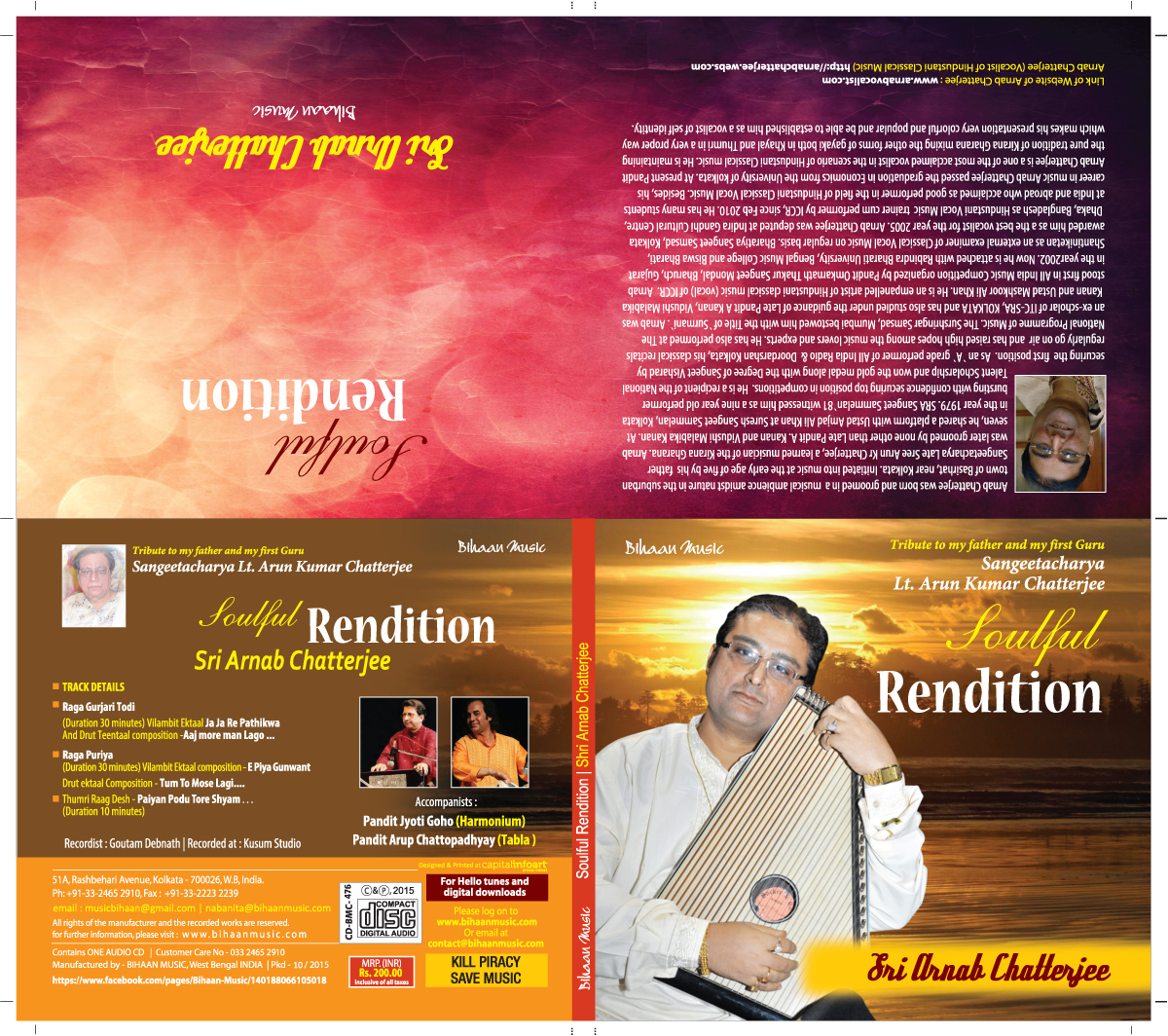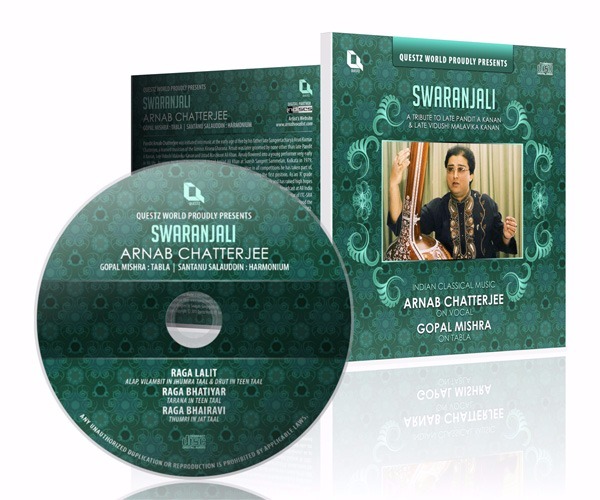 Recent CD Released of Pandit Arnab Chatterjee,released by Questz World. The album is named as `Swaranjali`, dedicated to my Gurus late Pandit AKanan and late Vidushi Malabika Kanan. I sincerely thank Shri Swagato Gangopadhyay, the owner of Questz World, for his earnest contribution to release the CD of my live recoding. It is now available at all digital platforms in 240 countries. Very soon, it will be available at the major music stores of Kolkata.