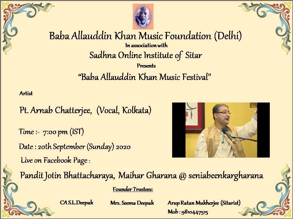 Forthcoming concert at Baba Alluddin Sangeet Samaroh