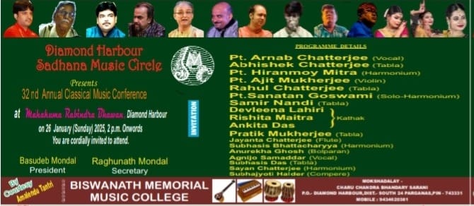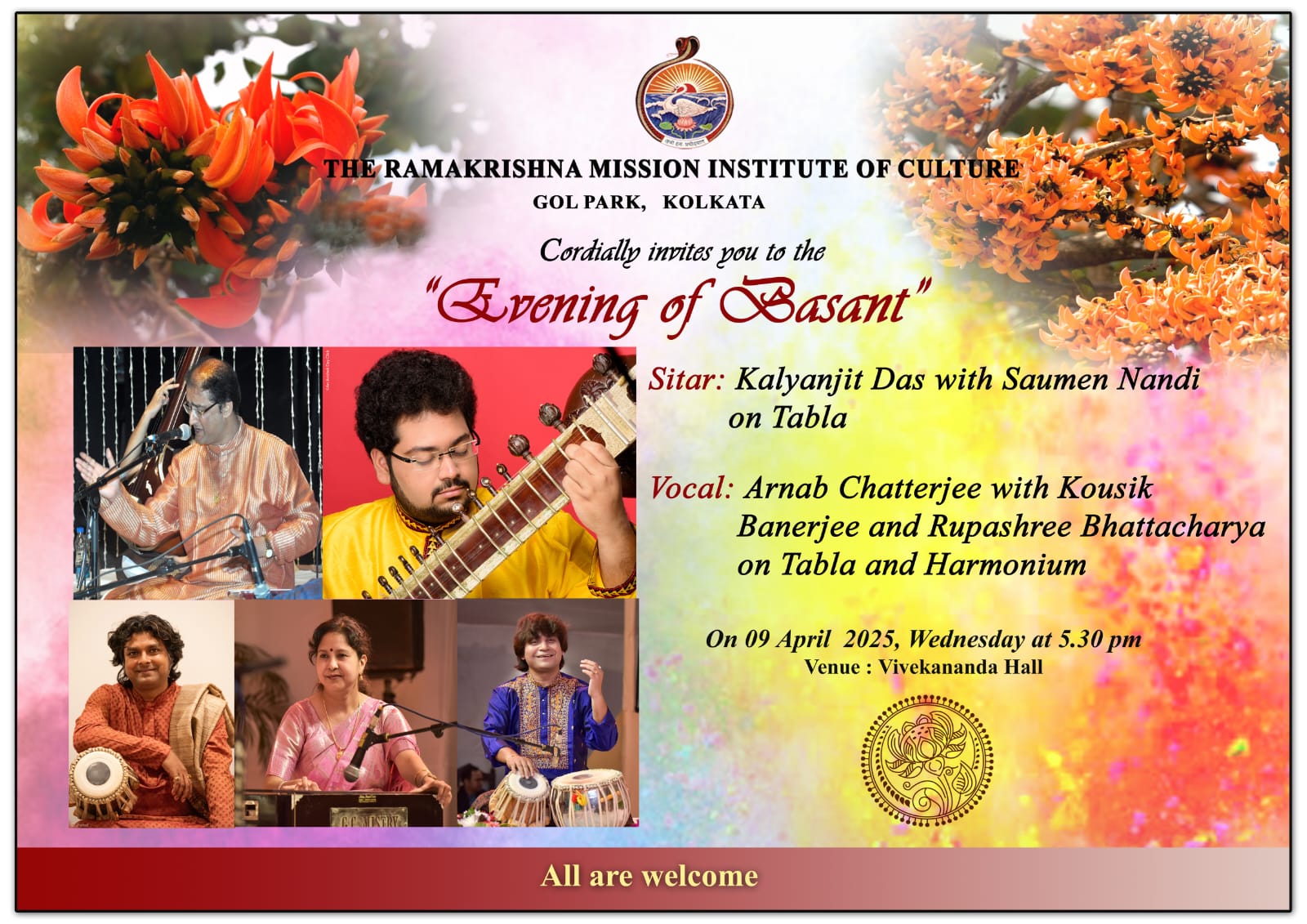 Forthcoming concert at Ramakrishna institute of Culture Golpark Kolkata Spring Festival On 9th April 2025 5.30pm onwards