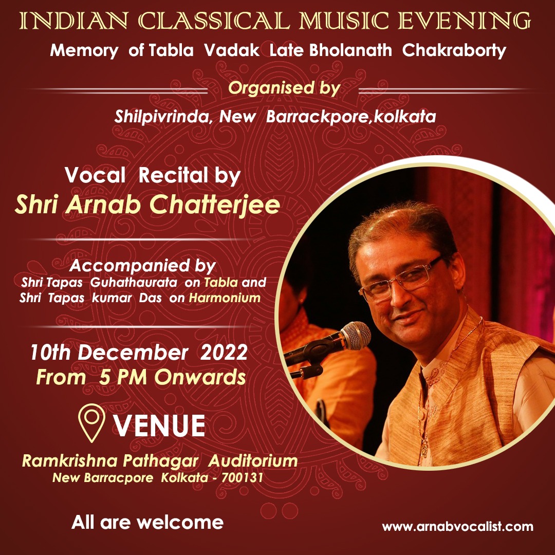 Forthcoming performance on December 2022 5 pm onwards at Ramkrishna Pathagar New Barrackpore,kolkata 131
